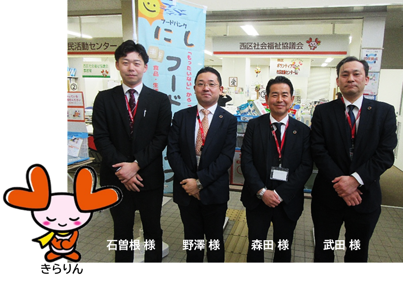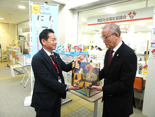 フードバンクにし は、令和7年春、区内にある6つのコミュニティ協議会が発起団体になり、設立されました。地域のコミ協によるフードバンクの設立は県内でも初めての取り組みです。西区社会福祉協議会は、協賛団体として食料品、生活用品などをお預かりする拠点としての役割を担っています。いただいた食料品は、必要なかたへお渡しいたします。温かいご支援に心より感謝申し上げます。